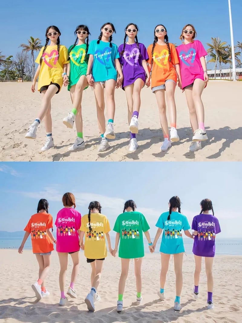 Dưới đây là những kiểu áo được các nhóm, công ty và gia đình yêu thích khi đi du lịch biển: